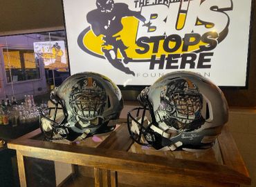 The two helmets I completed onsite that evening were auctioned together for an impressive $5,500.00, with every penny benefiting Jerome’s charity.