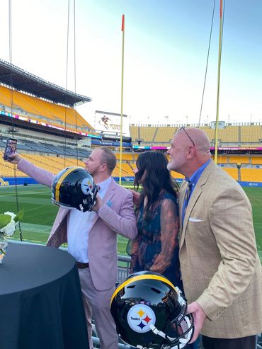 In October, I attended the Bus Stops Here Foundation’s annual gala in Pittsburgh, an event supporting at-risk youth. To my surprise, Jerome Bettis’s team contacted my family and created a tribute video recognizing my charitable work with his foundation. I was honored to receive the Courage Award for continuing my efforts while battling a rare disease. During the event, I spoke at the Champions Club at Acrisure Stadium. I also had the privilege of dining with Troy Polamalu and Jerome Bettis’s family, making it a memorable evening.